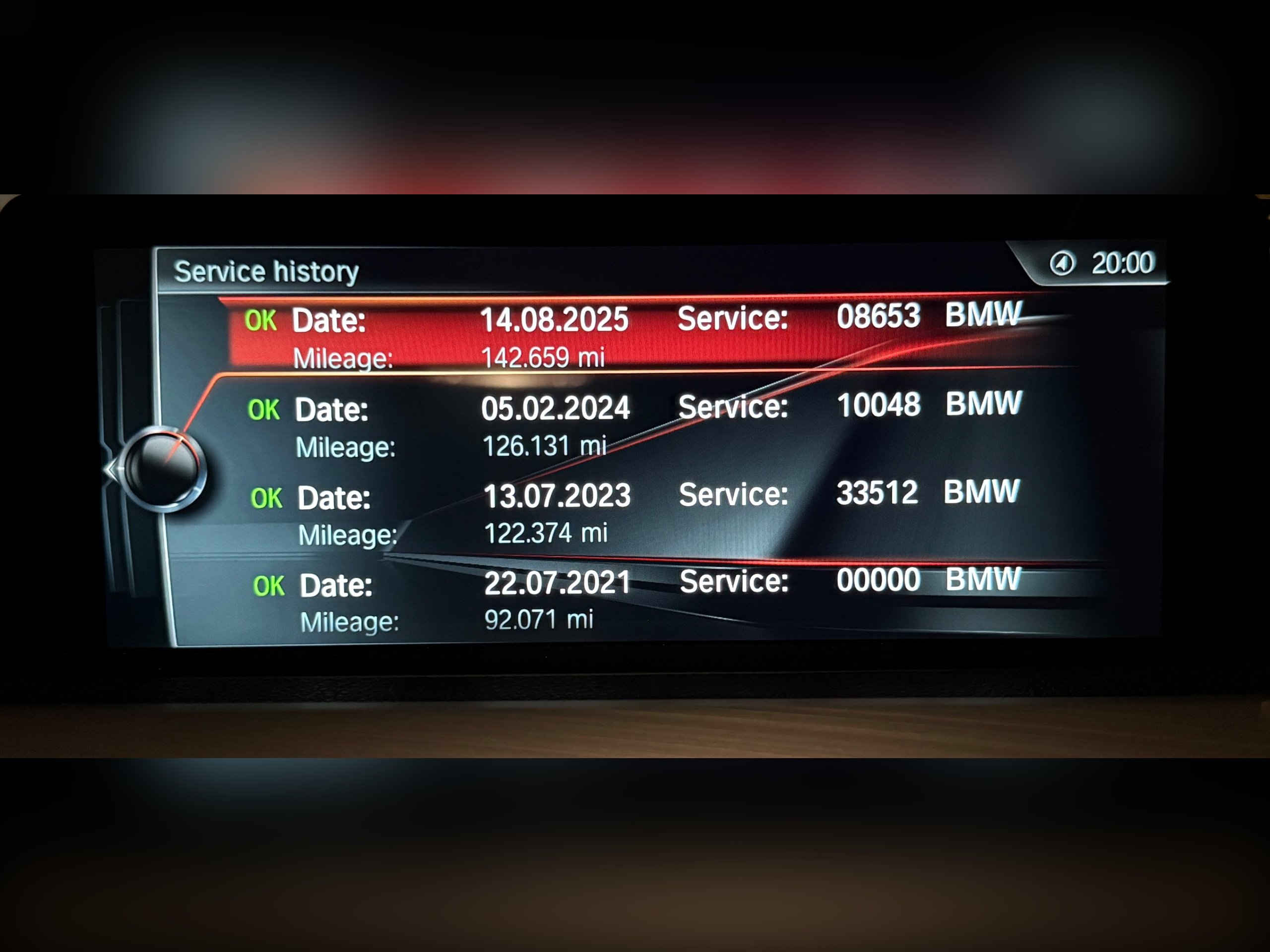 Full BMW service history – last serviced on 14/08/2025 at 142,659 miles.